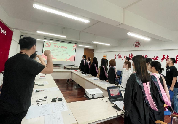 保险学院党总支书记陈林首先带领全体参会党员重温入党誓词,让毕业生党员铭记党的性质与宗旨,激荡内心情怀。接着陈林向毕业生党员表达了深切的期望以及衷心的祝愿,提出四点要求:一是不忘初心,牢记使命,在离开学校之后也要牢记党员身份;二是志存高远,努力成为一名有担当的党员;三是以诚守身,诚以待人,要有感恩意识,要把廉洁意识融入日常生活当中;四是脚踏实地,从细节出发,注重身心和谐。 接着学院专职组织员孟庆莉就党员组织关系转接事宜做了详细解读,再次阐明提供准确介绍信信息的重要性,以及在规定时间内完成党组织关系转接工作的严肃性。 活动第三项是全体毕业生党员签署毕业生党员承诺书。王玲燕带领全体毕业生党员诵读承诺书,承诺在今后的工作、学习、生活中努力践行共产党人的初心和使命,自觉发挥模范带头作用;持续用党员的标准严格要求自己,不辜负党组织的培养和期望,为学校争光。 活动最后,保险学院院长、党总支副书记徐爱荣寄语毕业生党员:做好毕业后的规划,注重知识学习,多提升自己;注重视野的开阔,学会找出系统应对的方法;工作中要联系专业所学,考虑风险管理和防范。希望毕业生党员们走向社会后始终保持共产党员的先进性,建功立业新时代。