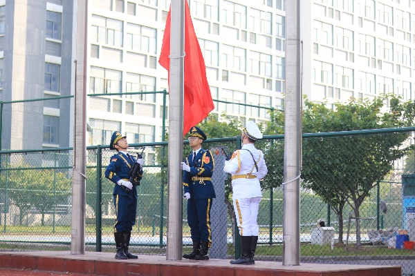 730分,升旗仪式正式开始。迎接着初生的太阳,国旗班同学踏着整齐划一的步伐,来到了国旗台下。伴随着铿锵有力的《义勇军进行曲》,缓缓升起的五星红旗迎着朝阳熠熠生辉。