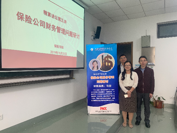 1025日下午,保险学院在二教举办精算讲坛”第五讲——保险公司财务管理问题研讨专题讲座。本期主讲嘉宾为中国人民财产保险股份有限公司(简称人保财险)上海分公司精算部总经理助理、中国精算师马堃。人保财险上海分公司直属支公司总经理蔡爱明应邀出席。讲座由保险学院院长徐爱荣主持,2017级保险专业学生参加了本次讲座。