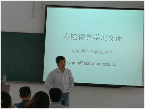 2018年11月20日下午,保险学院在六教219举办了“精算讲坛”第二讲——“寿险精算的学习内容和方法”。本期主讲嘉宾为华东师范大学教授、博士生导师钱林义先生。钱林义教授为中国准精算师,中国工业与应用数学学会金融数学与工程和精算保险分会精算保险青年专业委员会主任,上海市曙光学者。讲座由保险学院精算系主任李鹏主持、精算系张杰老师以及2016级保险专业精算方向学生参加了本次活动。
