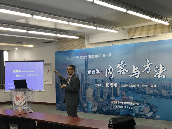 谢志刚教授为推动中国精算师职业制度建设作了一系列工作,他主编了中国第一本精算刊物《精算通讯》、引进了英国精算师考试中心和美国意外险精算考试中心、参与设计了中国精算师考试制度、并且是中国风险管理与精算论坛的创始人之一。今年我校新设精算学专业,并招收了第一届本科生。为促进专业建设,保险学院设立“精算讲坛”这一平台,邀请学界、业界的精算专家等以讲座的方式向广大同学介绍精算领域及其中的工作。本次讲座是“精算讲坛”第一讲,旨在结合专业特点,启发学生掌握正确的学习方法,帮助其激发其学习动力、认识所学专业、规划未来职业发展。