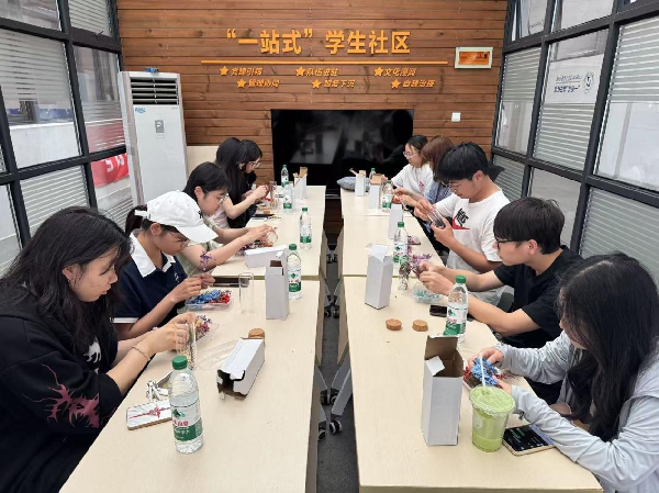 在拿到材料后,同学们纷纷迫不及待地开始构思自己的作品。充分发挥自己的想象力和创造力,将自己的情感和想法融入到作品中,大家在轻松愉快的氛围中,共同享受着手工制作带来的乐趣,欢声笑语回荡在五教玻璃房内。