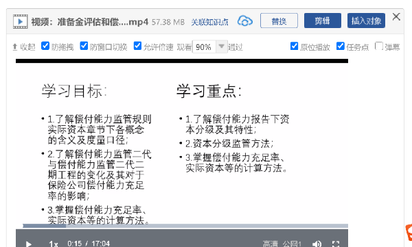 石安其琛老师在《准备金评估与偿付能力监管》课程中,开篇即明确了学习目标和学习重点,使同学们对于课堂内容有整体了解。石安老师率先尝试引入“闯关模式”进行讲解,即在一段教学内容的视频之后紧跟一个思考题,思考题结束后才能继续看下面的视频。这种“闯关模式”既可以检测学生已学的知识点是否已经理解,也可以引导学生跟着老师的思路进行思考探索。老师讲解结束后放一段复习的视频,复习已学的课程内容,最后放上思考题的答案。通过引入闯关模式,能够启发学生在课堂上主动思考、积极动脑,既增加了学习乐趣,又提高了学习积极性。