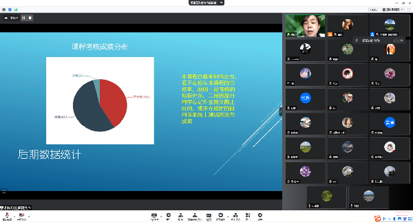 陈老师从慕课的定义及其特征出发,就专业慕课前期准备、教学设计、后期数据统计、问题与反思这四个方面分享了教学经验。陈老师强调,线上教学需要大量的前期准备,需要进一步提炼知识点,录制好教学视频,避免讲解过于口语化,选择短小精悍、典型案例等比较实用的教学资料,建好题库。陈老师指出,大学教育应启发和引导为主,课外作业增加阅读与专业写作内容。另外,陈老师认为,有一本自己编写的教材做基础,在线教学中会更加得心应手。陈老师根据慕课教学的统计数据,分析了学情和学生特点,总结提出了提高教学效果的方式方法,并建议选择在慕课网开课的课程,要充分考虑课程的特点和受众范围。
