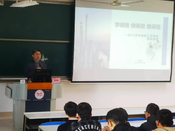 围绕讲座主题,李玉新先生结合自身经验分别从“保险知识学习”、“保险公司工作”、“保险监管工作”等五个方面详细的为与会师生讲解了中国保险业的发展历程、上海国际保险中心建设取得的成效以及对保险功能的感悟,分析了我保险行业发展特点以及这些特点为保险行业发展带来的历史机遇和存在的现有问题。他勉励与会同学关注金融保险行业未来发展趋势,努力夯实经济理论的同时,关注金融保险实务,同时号召同学们积极加入保险行业,共同迎接机遇与挑战。