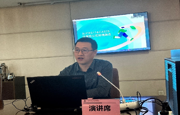 业界嘉宾演讲环节由保险学院副院长万晴瑶主持。小康人寿执行董事、首席投资官霍康先生,众安保险副总精算师、战略规划高级总监汤国权先生分别做《保险资产负债匹配和管理实务》、《从IFRS17&CAS25谈保险公司财精融合》主题演讲。