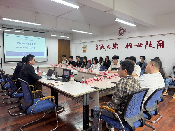 为有效发挥优秀毕业生榜样引领作用,激发2026届考研学生的积极性,4月24日,保险学院举行“院长下午茶”考研学生专场座谈会。学院院长徐爱荣、辅导员代表、2025届拟录取考研学生以及2026届考研学生代表等共同参加会议。座谈会由学院党总支副书记、副院长年大琦主持。