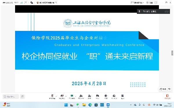 为深入贯彻党中央、国务院关于高校毕业生就业工作的决策部署,4月28日,保险学院举办“校企协同促就业‘职’通未来启新程”2025届毕业生就业对接会。中国人寿年丰保险代理有限责任公司上海分公司人事行政总经理周力勤、阳光人寿保险股份有限公司上海分公司人事行政部负责人周长征,保险学院院长徐爱荣、保险系和精算系系主任、毕业班辅导员以及50名毕业生代表共同参会。会议由保险学院党总支副书记、副院长年大琦主持。