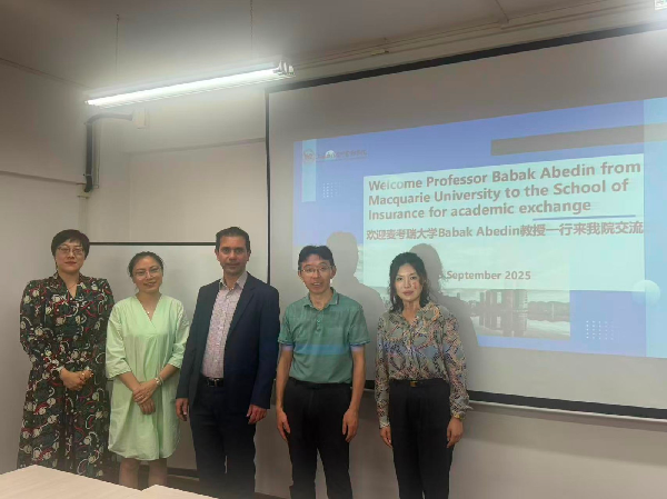 为加大开放办学的力度,稳步推进国际合作交流,深化国际化人才培养,保险学院于2025年9月15日下午举行与澳大利亚麦考瑞大学精算与商业分析系的合作交流活动。麦考瑞大学商学院精算与商业分析系主任Babak Abedin教授一行、保险学院院长徐爱荣、副书记副院长金茵(挂职)、国际交流处项目联络人方正、学院骨干青年教师及部分在校学生参加了交流活动,活动由徐爱荣院长主持。