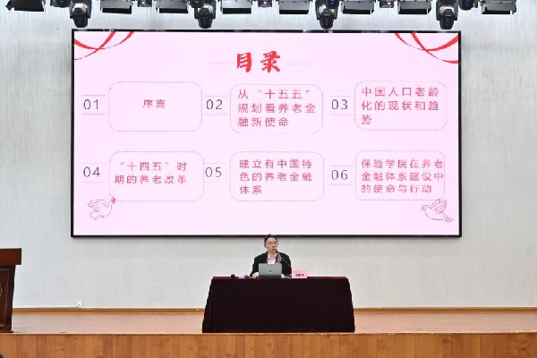 会上,徐爱荣紧扣党的二十届四中全会精神和“十五五”规划建议,系统阐述建立有中国特色的养老金融体系的时代背景、核心内涵与构建路径。报告深入分析在人口老龄化加速背景下,如何发挥我国制度优势,构建以基本养老保险为根基、市场化养老为补充、养老产业金融为支撑、风险防控为保障的多层次养老金融体系。同时,结合保险学院学科特色,明确学院在人才培养、科学研究与社会服务方面的使命担当,引导师生为服务国家战略贡献智慧与力量。