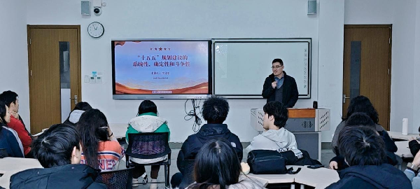 李文亮为师生党员深入阐释了“十五五”规划建议的时代背景与战略意义。他指出,规划建议是一个有机整体,必须运用系统思维把握其目标、任务与政策间的协同联动,用科学长远眼光谋划国家发展方向。同时,规划为未来发展注入了宝贵的确定性,是凝聚共识、指引方向的核心依据。此外,面对前进道路上的风险挑战,必须深刻理解其中蕴含的斗争性,把握历史主动,增强应对矛盾因素、破解难题梗阻的本领。 学院党总支副书记、副院长金茵(挂职)在总结中表示,党课内容对学院深入学习贯彻党的二十届四中全会精神具有重要指导意义,并号召学生党支部全体师生党员将学习成果转化为推动学院高质量发展的实际行动。 学生支部全体党员深感启发,表示将进一步深入思考党课内容,坚定理想信念,践行党员使命,为实现“十五五”蓝图贡献智慧与力量。