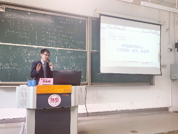 陈旻聪从自身创业实践经历谈起,告诉大学生们在校期间就要学会清晰的定位自己,并且如何去选择适合自身发展的公司和团队,并从管理者的视角就组建团队的核心内容——打造使命、愿景、价值观给大家带来了一场有趣生动的分享。他告诉大家要学会准确的自我分析与评价,确定自己的目标,并为之努力。只有仰望星空与脚踏实地并存者才能走得到远方,努力去做一个志存高远又肯脚踏实地去拼搏的人。