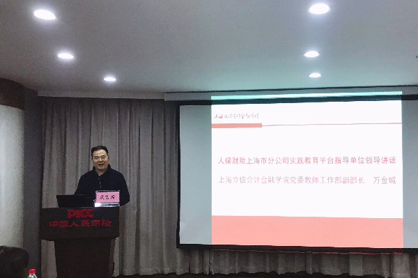 12月15日下午,2017年度“课程思政教学改革” 人保财险上海分公司实践教育平台结业典礼在人保财险上海市分公司直属支公司会议室举行。平台学员圆满完成校内外理论和实践课程,顺利结业。校党委教师工作部副部长万金城、人保财险上海市分公司人力资源部总经理张蕾、直属支公司总经理蔡爱明、副总经理韩露以及保险学院党政主要领导、全体学员出席了结业典礼。