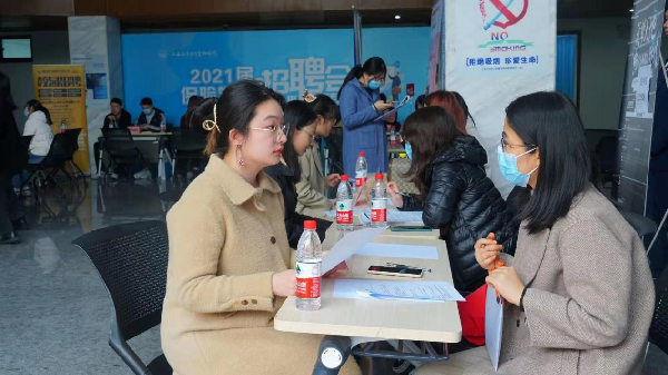 3月24日下午,保险学院2021届春季专场招聘会在浦东校区第二教学楼一楼大厅举行。为更好地服务2021届毕业生就业,在学院领导与校招就办的指导下,保险学院本着“专业对口,人岗匹配”的原则,邀请了包括平安养老上海分公司、上海盛大汽车服务集团等14家单位来校参会,招聘岗位涉及团险销售、人事党建、财务会计、保险核保、理赔及法务等。