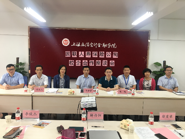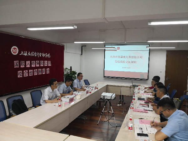 7月2日,无锡国联人寿保险公司人力资源部副总经理马金贵一行3人来我院调研交流,继续教育学院院长解丹阳、产学研基地管理中心副主任李俊杰与我院领导共同参加了座谈交流会,会议由保险学院保险与养老金研究中心主任万晴瑶主持。